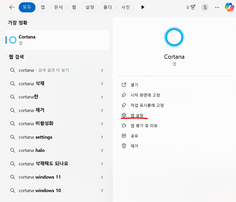 윈도우 10, 11 운영체제 설치 시 cortana(코타나)라는 프로그램이 자동 설치되나보다.